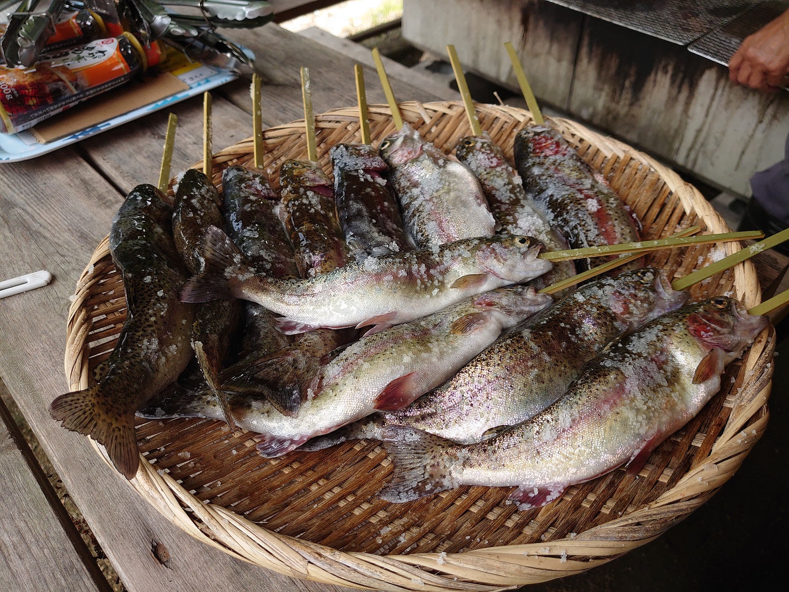 皆で協力して36匹釣り上げ、その場で丸焼きに調理してもらい、釣り後はBBQを行いました。