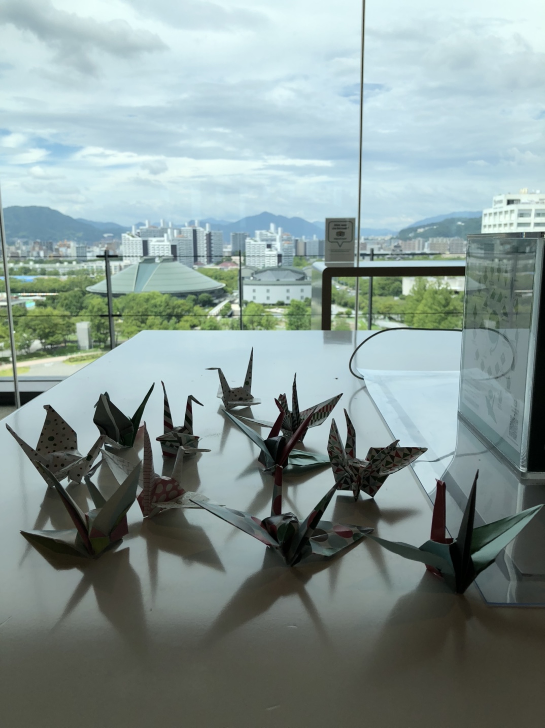 おりずるタワーでは折り紙を購入し12階から折り鶴を落とせるようになっており5人1組で足元が透けている所からそれぞれ落とし下までキレイに飛んでいきました。高所恐怖症のメンバーやスタッフの顔が青ざめておりそれを喜ぶメンバーの姿もありました。