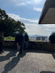 散策チームは、見晴らしの良い場所をみつけて一休み。